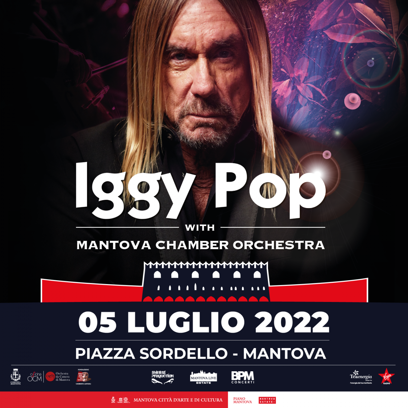 Si avvicina l’esclusivo appuntamento, fissato per martedì 5 luglio in Piazza Sordello, che vedrà Iggy Pop in concerto con la Free band e l’Orchestra da Camera di Mantova e si arricchisce con speciali novità: confermati il polistrumentista e compositore Enrico Gabrielli come arrangiatore dei brani e direttore dell’Orchestra e DJ Ringo, storico disc jockey e conduttore di Virgin Radio, che curerà l’apertura dello show con un set inedito. Un appuntamento unico, con posti a sedere, le cui prevendite sono disponibili sui circuiti ufficiali Ticketmaster e Ticketone.