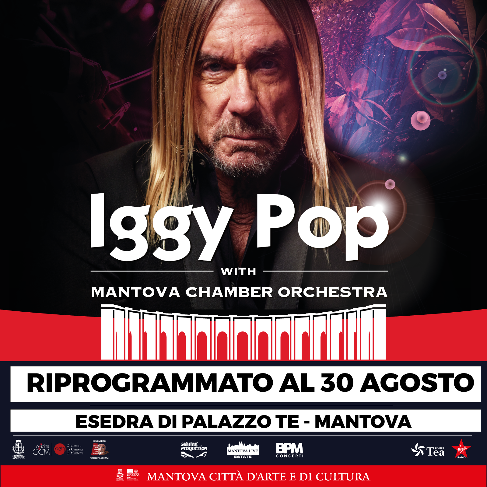 A causa di un problema alla sua voce, Iggy Pop è costretto a rimandare il suo show speciale a Mantova con la Mantova Chamber Orchestra. Il concerto verrà recuperato il 30 agosto 2022 all’Esedra di Palazzo Te a Mantova e i biglietti acquistati rimangono validi per la nuova data. A breve saranno pubblicati tutti i dettagli sul nuovo appuntamento e sulle richieste di rimborso.