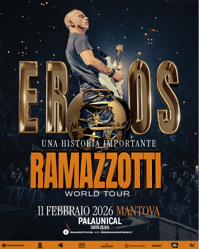 Il tour mondiale che porterà Eros Ramazzotti a riabbracciare il proprio pubblico partirà con una data zero proprio al Palaunical di Mantova, per poi volare in oltre trenta paesi tra Europa intera, Nord America-Canada e America Latina.