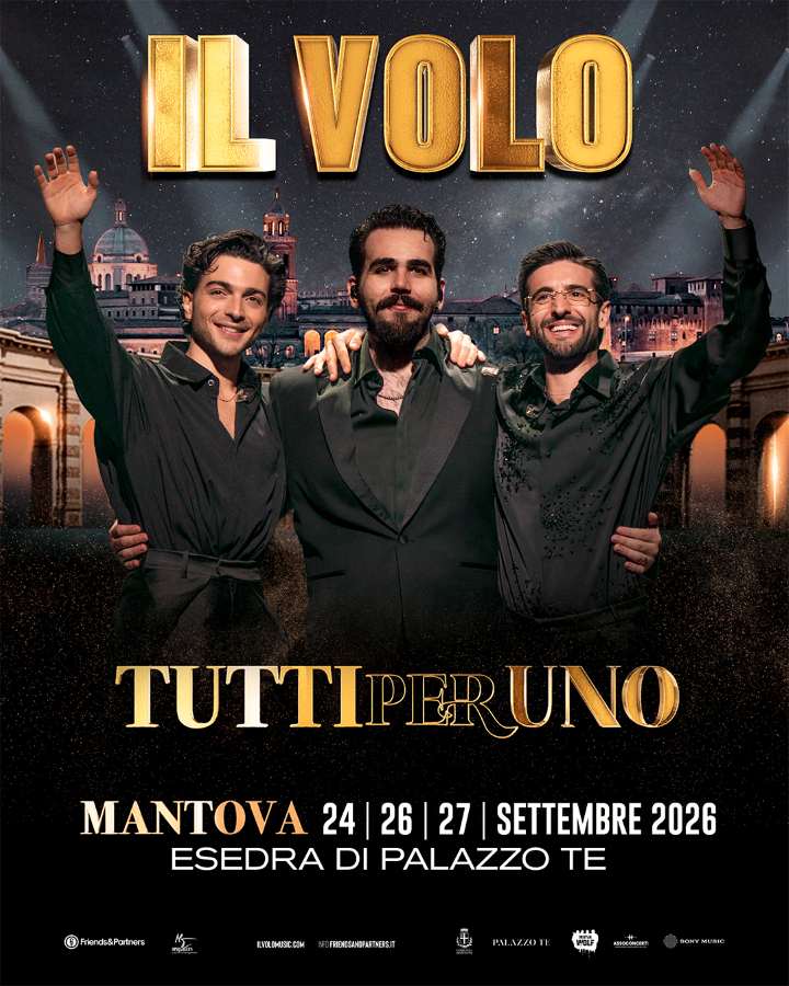 Nel pieno del successo di LIVE IN CONCERT – il tour nelle principali capitali europee – Il Volo annuncia la quarta edizione di TUTTI PER UNO, in programma il 24, 26 e 27 settembre 2026 nella prestigiosa location di Palazzo Te a Mantova, un luogo che per la seconda volta celebrerà la bellezza della musica del trio in una cornice dal fascino immortale.