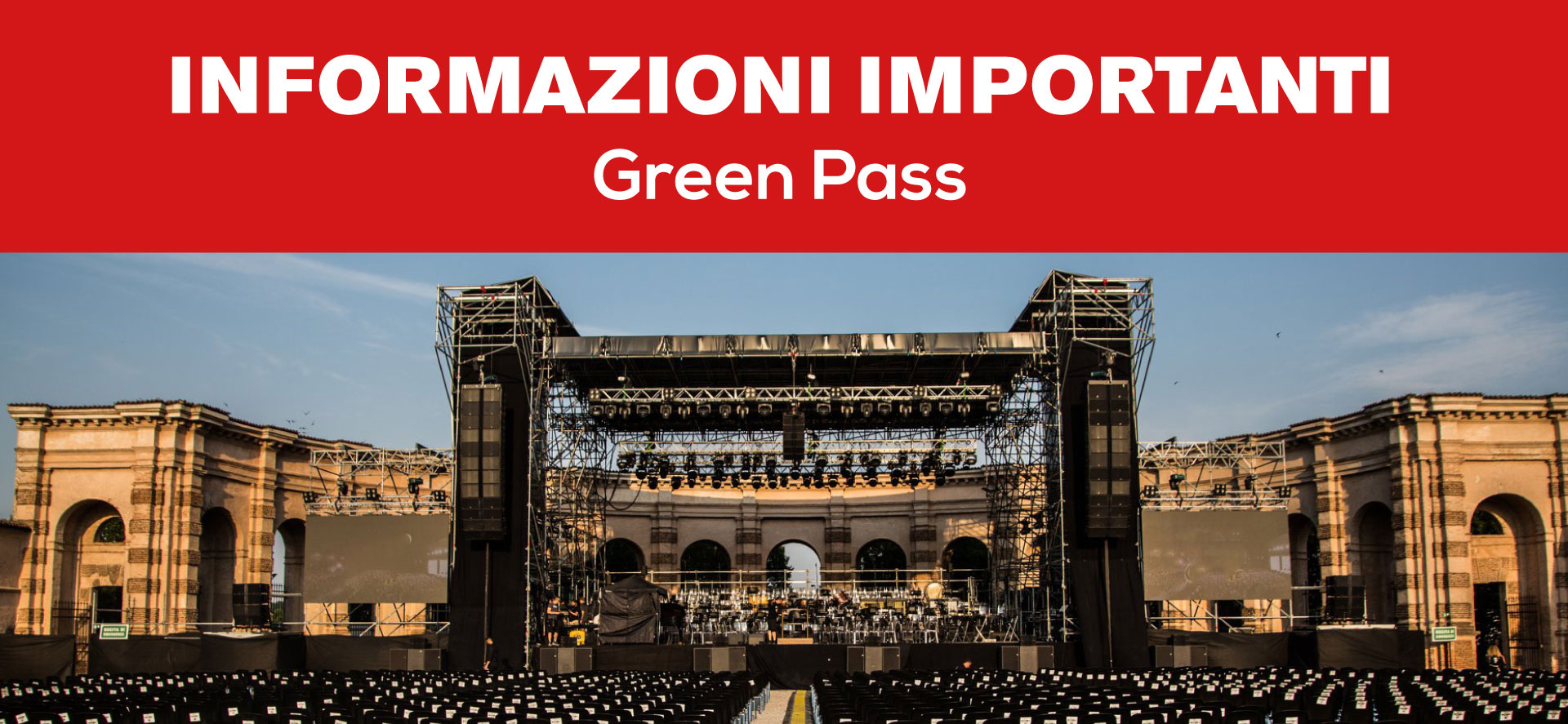 Sarà presente un info point per ogni evento per offrire la possibilità di effettuare il controllo preventivo del Green Pass nelle ore precedenti l’apertura dei cancelli, per velocizzare e rendere più fluido l’ingresso serale.